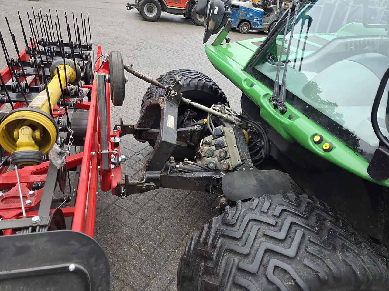 TUZ: przód kat I.: udźwig: 1500 kg, kompensacja wagi i drgań, system szybkiego montażu narzędzi roboczych, hydrauliczny przesuw boczny: 40 cm